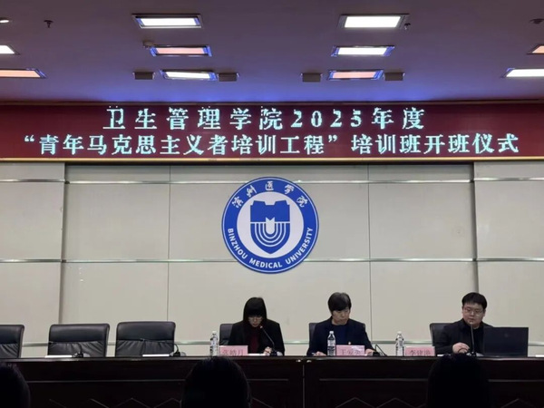 为进一步学习贯彻习近平新时代中国特色社会主义思想,深入培育新时代青年马克思主义者,筑牢青年骨干理想信念根基,引导青年学生在强国建设、民族复兴的伟大征程中勇担使命,2025年12月3日,卫生管理学院于图书馆六楼报告厅,通过线上线下相结合的方式,在烟台、滨州两校区同步举办2025年“青马工程”大学生骨干培训班暨学生干部培训班开班仪式。学院党总支副书记王爱英老师、培训班班主任张皓月老师、辅导员老师、党支部教师党员、学生会成员、学生党员、党员发展对象、各班级学生干部参加本次仪式,仪式由学院辅导员李建港老师主持。