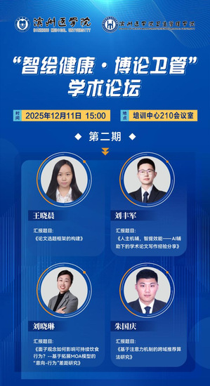 “智绘健康·博论卫管”学术论坛是我院营造学术生态、助力教师成长的重要品牌活动,后续将持续围绕学科前沿、科研方法、项目申报等领域开展系列活动,为我院高质量发展注入学术动能。