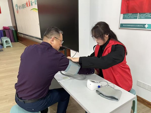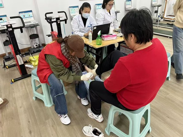 活动期间,志愿者有序为社区居民提供针对性健康服务:精准开展高血压测量服务,细致记录居民血压数据,针对不同血压情况给出饮食、作息等健康指导,帮助居民及时掌握自身血压状况;同步开展足底检测,凭借专业检测手段评估居民足部健康情况,科普足部养护常识,助力居民重视足部健康管理。针对肥胖防控需求,服务队重点推广科学运动干预模式,结合居民身体实际,讲解适宜的运动方式与强度,引导居民通过规律运动科学防控肥胖,养成健康生活习惯。